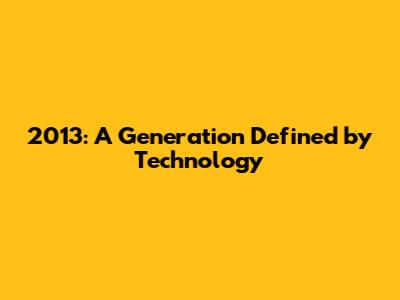 2013: Defining The Tech Generation