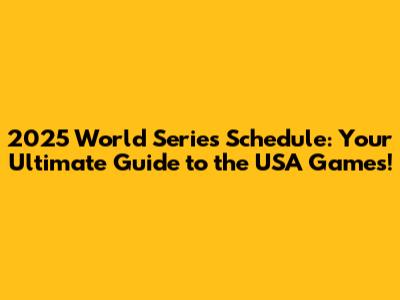 2025 World Series Schedule: Everything You Need To Know!