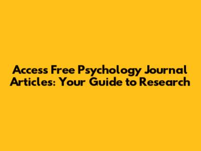 Access Free Psychology Journal Articles