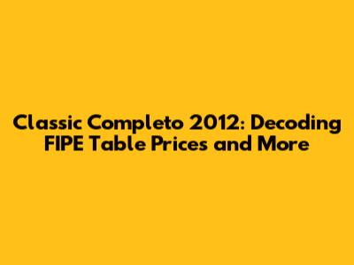 Classic Completo 2012: FIPE Table Prices & More