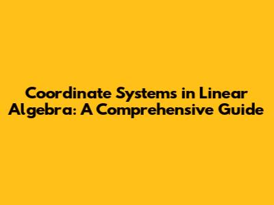 Coordinate Systems In Linear Algebra: A Comprehensive Guide