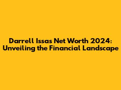 Hey everyone, let's dive into the fascinating world of Darrell Issa's net worth in 2024! Knowing about a public figure's financial standing can be super interesting, right? It gives us a peek into their successes, investments, and overall financial journey. So, grab your favorite drink, and let's unravel the financial story of Darrell Issa. This is going to be an exciting ride through the numbers, and trust me, it's not just about the digits; it's about understanding the path that led to them. We will talk about his early life, business ventures, political career, and assets. So, buckle up, because we're about to explore the financial landscape of Darrell Issa like never before.
