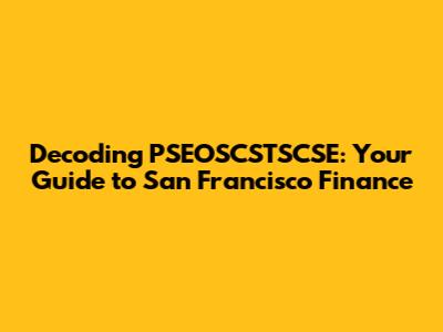 Hey finance enthusiasts! Ever heard of the mysterious acronym PSEOSCSTSCSE and wondered what the heck it means in the context of San Francisco's financial landscape? Well, buckle up, because we're about to dive deep into this acronym and its relevance. It's time to demystify PSEOSCSTSCSE and explore its significance within the vibrant, and often complex, world of San Francisco finance. This guide aims to be your go-to resource, providing a clear and comprehensive understanding of this seemingly cryptic code. We'll break down the components, explain the context, and highlight how it impacts you, whether you're a seasoned investor, a budding entrepreneur, or just someone curious about the financial workings of the City by the Bay. Let's get started and uncover the secrets behind PSEOSCSTSCSE, shall we?