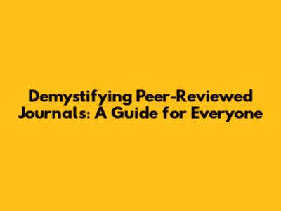 Demystifying Peer-Reviewed Journals: A Guide For Everyone
