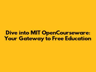 Dive Into MIT OpenCourseware: Your Gateway To Free Education