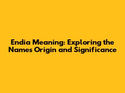 Endia Meaning: Exploring The Name's Origin And Significance