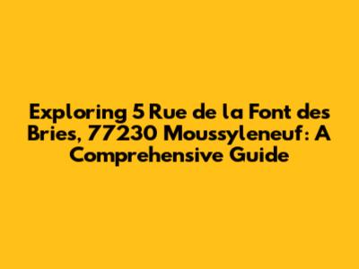 Hey guys! Ever wondered about 5 Rue de la Font des Bries in Moussyleneuf? Well, you're in the right place! This guide is your one-stop shop for everything you need to know about this address. We'll dive deep into the details, providing you with a comprehensive overview of the area, its surroundings, and what makes this location special. Let's get started, shall we?