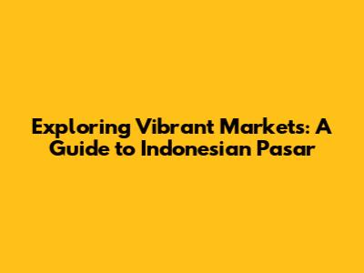 Exploring Vibrant Markets: A Guide To Indonesian 'Pasar'