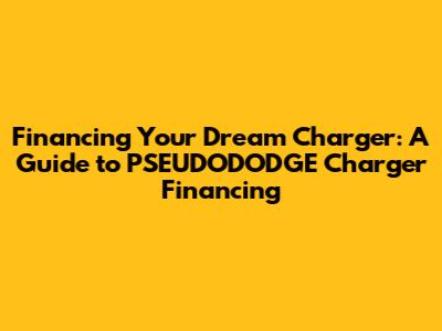 Financing Your Dream Charger: A Guide To PSEUDODODGE Charger Financing