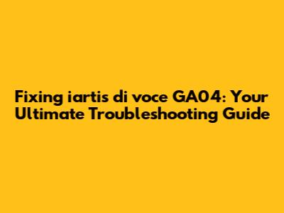 Fixing Iartis Di Voce GA04: Your Ultimate Troubleshooting Guide