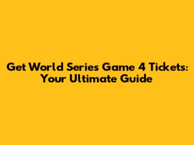 Get World Series Game 4 Tickets: Your Ultimate Guide
