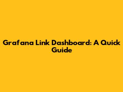 Grafana Link Dashboard: A Quick Guide