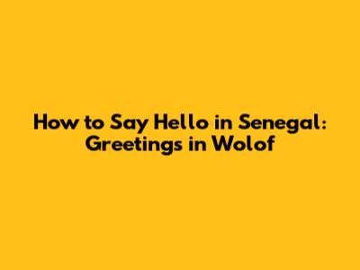 How To Say Hello In Senegal: Greetings In Wolof