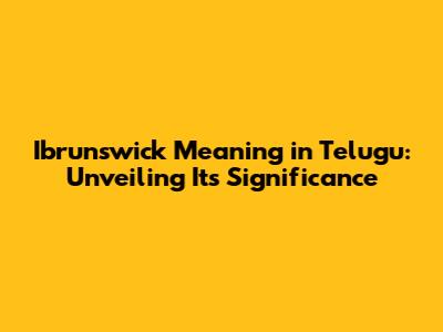 Ibrunswick Meaning In Telugu: Unveiling Its Significance