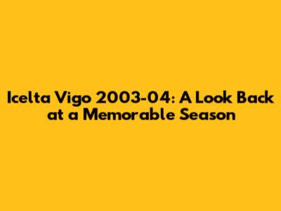 Icelta Vigo 2003-04: A Look Back At A Memorable Season