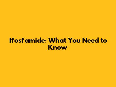 Ifosfamide: What You Need To Know