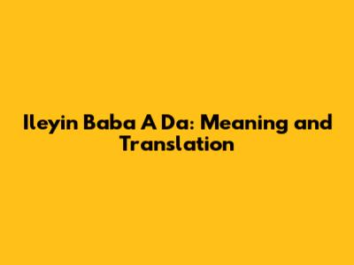 Ileyin Baba A Da: Meaning And Translation