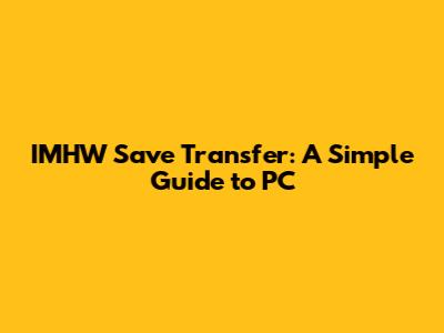 IMHW Save Transfer: A Simple Guide To PC