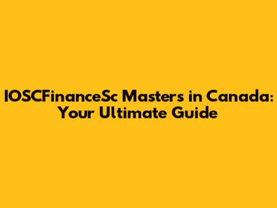 IOSCFinanceSc Masters In Canada: Your Ultimate Guide