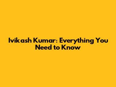 Ivikash Kumar: Everything You Need To Know