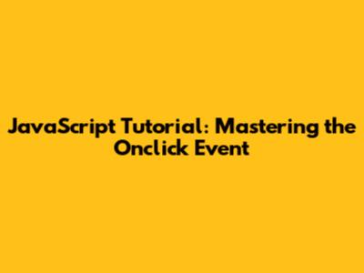 JavaScript Tutorial: Mastering The Onclick Event