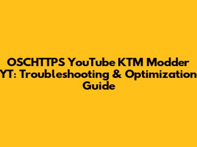 Common Problems and Quick Fixes for OSCHTTPS YouTube KTM Modder YT