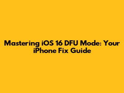 Mastering IOS 16 DFU Mode: Your IPhone Fix Guide