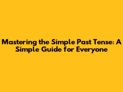 Mastering The Simple Past Tense