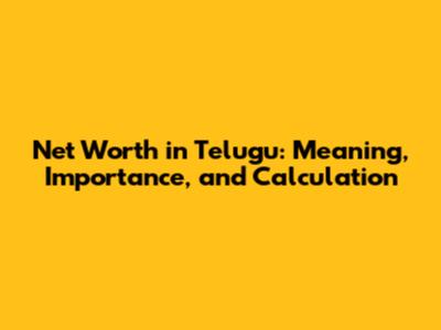 Net Worth In Telugu: Meaning, Importance, And Calculation