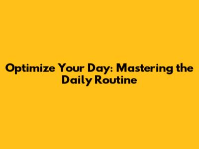 Optimize Your Day: Mastering The Daily Routine