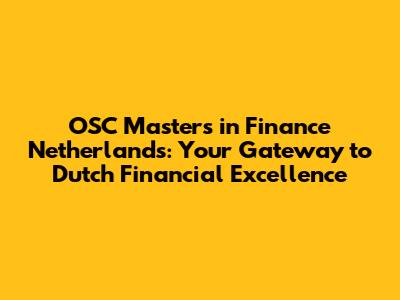 OSC Masters In Finance: Your Dutch Financial Journey