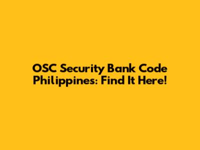 OSC Security Bank Code Philippines: Find It Here!