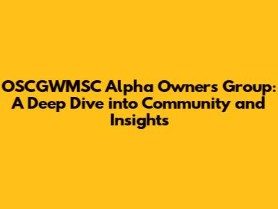 OSCGWMSC Alpha Owners: Community & Insights