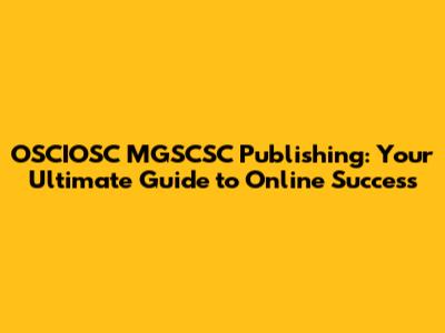OSCIOSC MGSCSC Publishing: Your Guide To Online Success