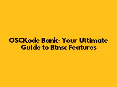 OSCKode Bank: Your Ultimate Guide To Btnsc Features