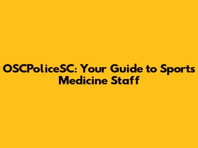 OSCPoliceSC: Your Guide To Sports Medicine Staff