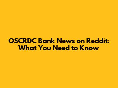 OSCRDC Bank News On Reddit: What You Need To Know