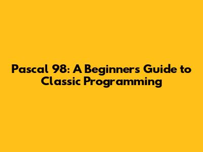 - Historical Significance: Learning Pascal 98 gives you a good understanding of programming history and how it has shaped modern programming languages. You'll gain appreciation for the evolution of software development.