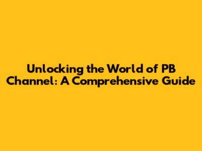 Unlocking the World of PB Channel: A Comprehensive Guide
