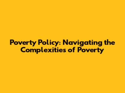 Poverty Policy: Strategies For A Better Future