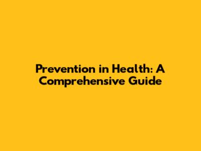 Prevention In Health: A Comprehensive Guide