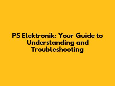PS Elektronik: Your Guide To Understanding And Troubleshooting