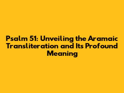 Psalm 51: Aramaic Transliteration And Its Profound Meaning