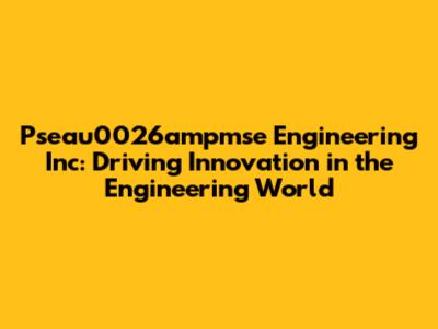 Pseau0026ampmse Engineering Inc: Innovation In Engineering