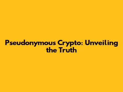 Pseudonymous Crypto: Unveiling The Truth