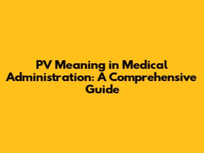 PV Meaning In Medical Administration: A Comprehensive Guide