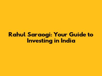 Rahul Saraogi: Your Guide To Investing In India