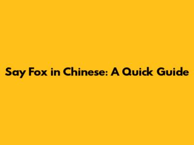 Say 'Fox' In Chinese: A Quick Guide