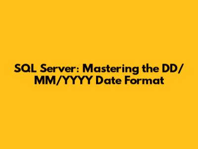 Hey guys! Ever wrestled with the DD/MM/YYYY date format in SQL Server? It can be a bit of a headache, especially if you're dealing with data from different regions or systems. But don't worry, I've got you covered! In this article, we'll dive deep into how to handle this specific date format in SQL Server, ensuring your data is accurate, consistent, and easy to work with. We'll explore various methods, from simple conversions to more advanced techniques for data validation and formatting. So, let's get started and make date handling a breeze!