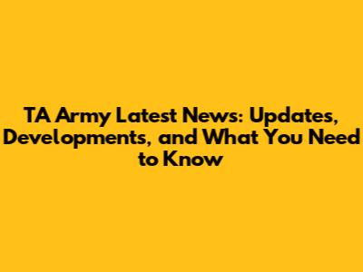 TA Army News: Updates, Developments, And What You Need To Know